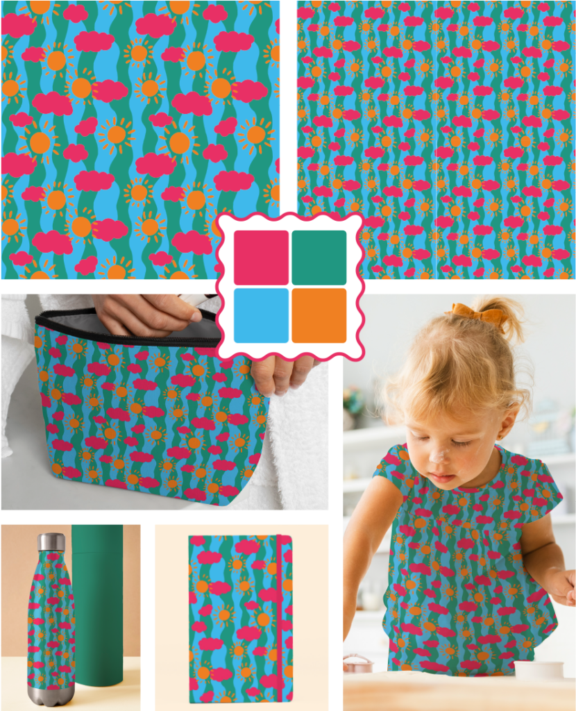 Ce motif soleil all-over a été imaginé pour un univers enfant/ado, car quoi de mieux qu’un peu de couleurs pour égayer le quotidien d’un adolescent avec des vêtements ensoleillés, un carnet type journal intime pour y déposer toutes ses émotions.